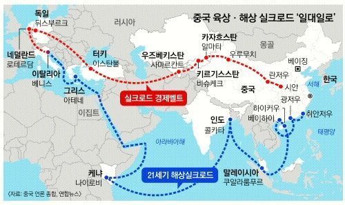 일대일로는 동남아와 중앙아시아, 서아시아, 중동과 아프리카, 심지어 유럽 쪽에서 영향력을 미치는 거대한 경제권을 형성하고자 하는 시도입니다. 그들에게 돈을 빌려주기도 하고 투자하기도 하며 인프라 건설 등을 돕고 이것을 통해 경제적 교류를 늘리고 중국의 영향력을 확대하고자 하는 것이죠.