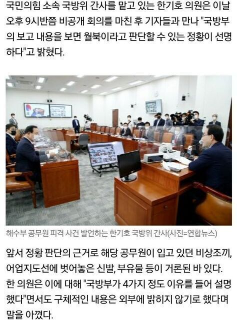 이에 대한 의견은 당시에도 그랬고, 당시 국힘당 의원 쪽에서도 월북이라고 판단했습니다.