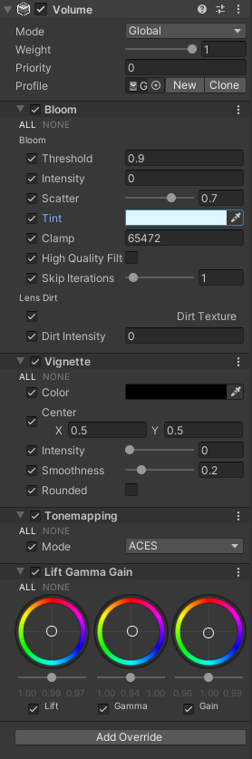 2021 URP에서는 글로벌 볼륨으로 명칭이 달라졌고 역시 그 세부기능 또한 변경된 것들이 있습니다.