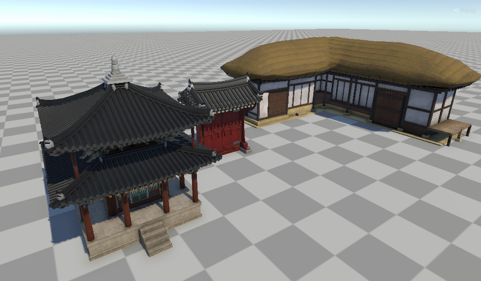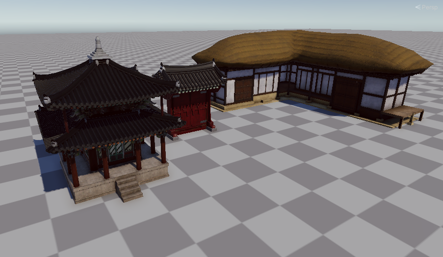 아래 쪽이 좀 더 꾹 내리눌러진 색감과 명암, 분위기를 가지지만 이건 라이팅의 환경(Environment)에서 인텐시티를 조절해주거나 디렉셔널 라이트에서 인텐시티 등 옵션들을 조정해주면서 보기 좋고 현실적인 밸런스를 찾아가줘야 합니다. 위 사진은 그런 조절 없이 단순히 포스트 프로세싱 효과를 켜서 적용만 시켜준 수준입니다.