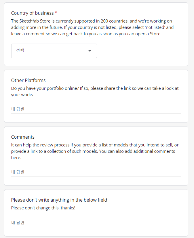 내용은 대충 판매할 모델링이나 모델 컬렉션에 대한 링크를 주면 검토에 도움이 될 수 있다는 의미이고, 답변으로 추가 설명을 할 수도 있다는 내용입니다.