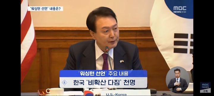 워싱턴 선언을 통해 확실하게 된 것은, 한국형 핵공유 같은 건 없다는 거고, 미국의 핵자산 운용권한은 여전히 미국 대통령에게 있으며, 그저 한국의 이야기를 한마디 정도 더 들어주겠다는 시그널에 불과합니다. 핵심적인 사안에서 달라진 건 아무 것도 없다는 거죠.