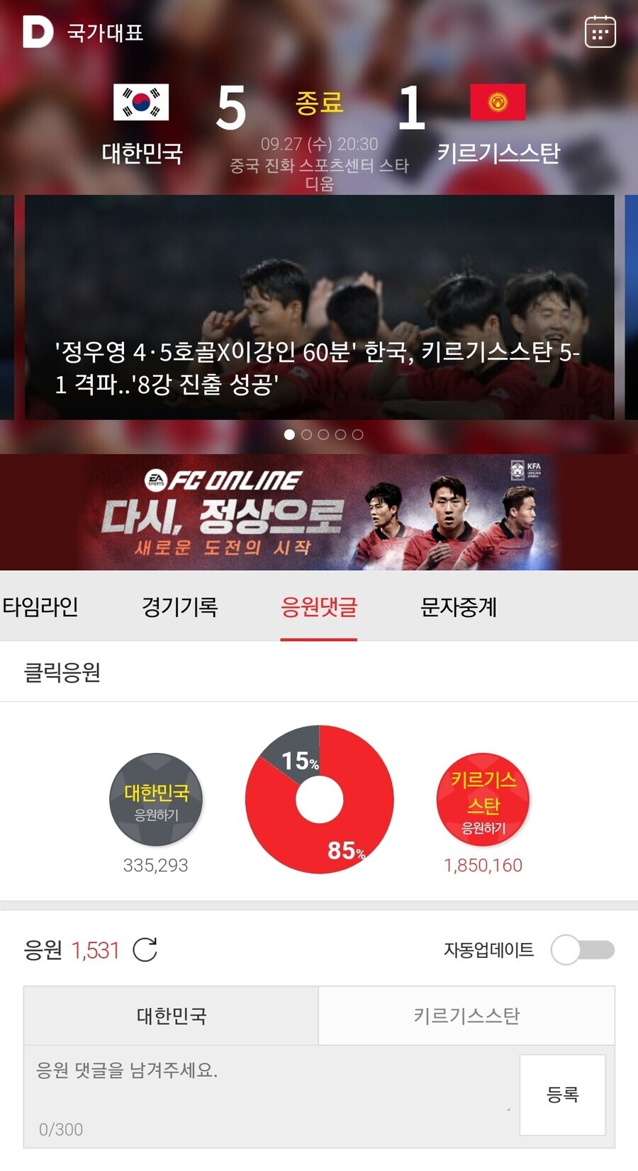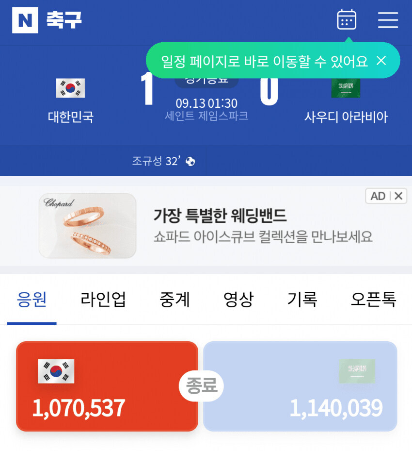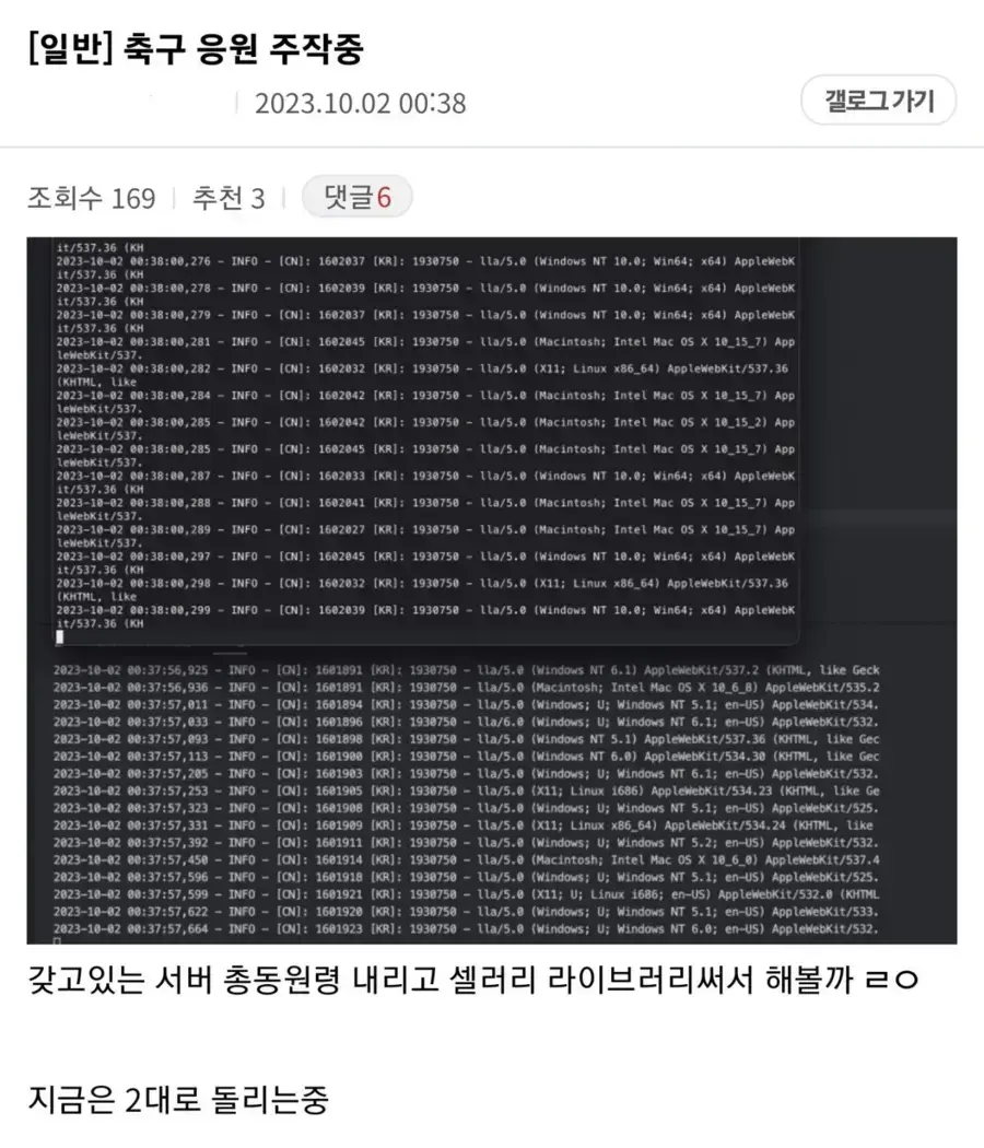 어느 유저가 다음에 중국 응원 숫자가 훨씬 많은 것을 발견함