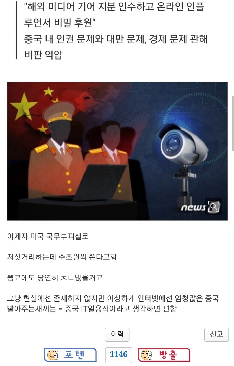 애초에 중국이 인터넷을 장악했다는건 실체가 없는 헛소리고